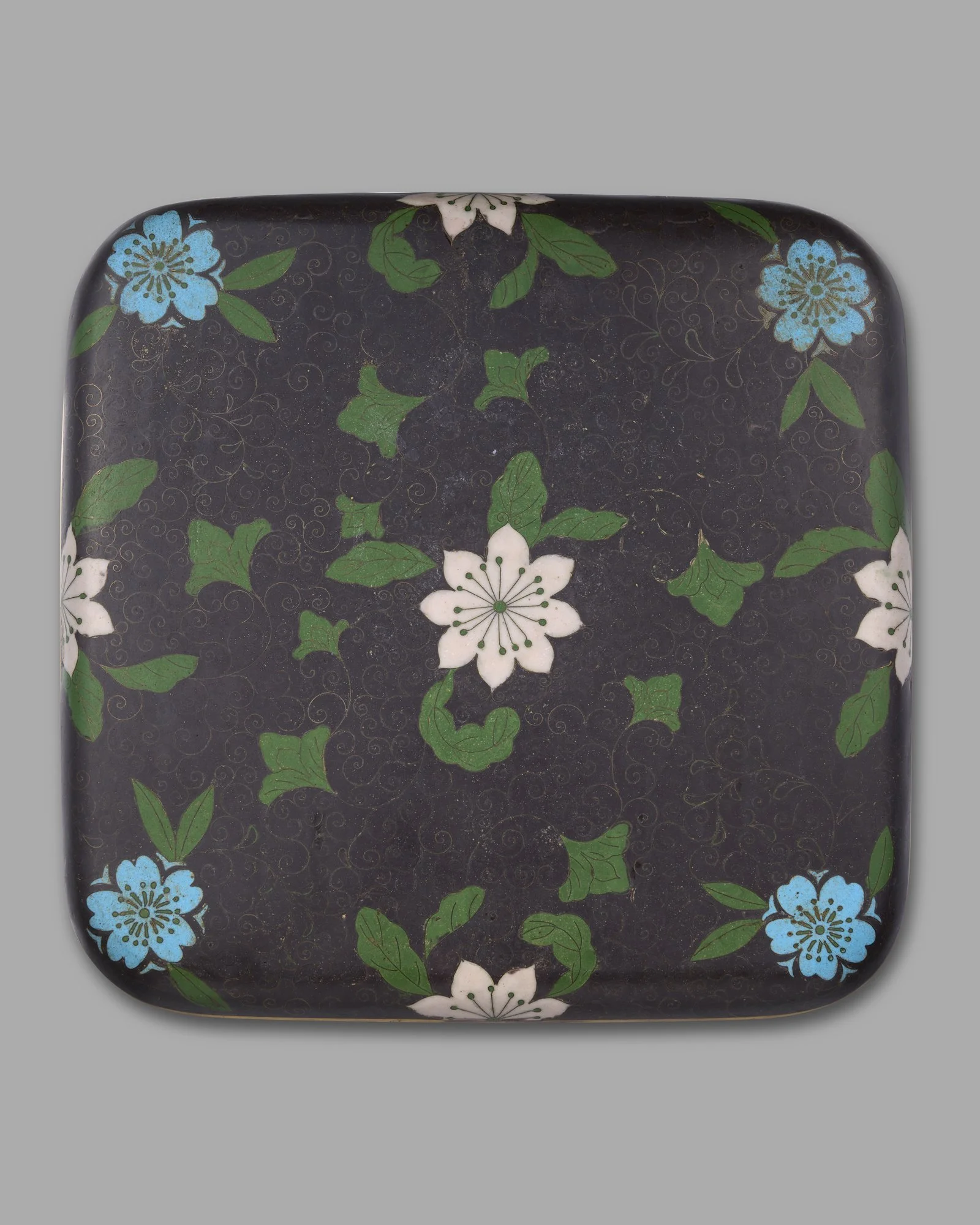 The lack of sakigake seal of Namikawa Sosuke and the floral reverse would indicate an early example of his work prior to his more ususal signed pieces. Exactly when this was remains unkown but around 1890 would appear likely. It is an interesting link piece between his work for the Shippo Kaisha and his later works.